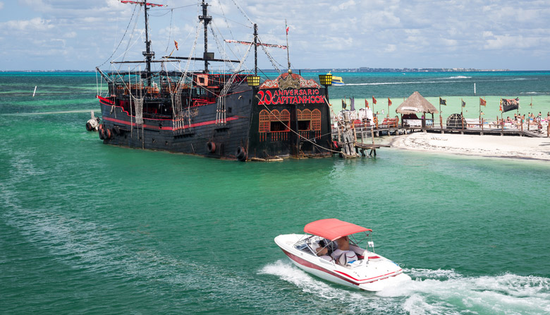 Welcome to a board pirate an authentic 18th century replica of a Spanish Galleon and step back in time to the pirate era! As you cruise through the beautiful waters of the Nichupte lagoon and Cancun Bay, the drinks will start flowing and you will be entertained with games and dancing before feasting on a hearty meal of either steak or lobster. During the cruise, you will witness a pirate attack where the pirates will engage in a sword fight!